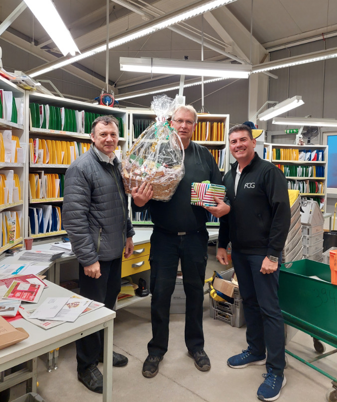 Andres Soretz vom Zentralausschuss und Andreas Bortolotti vom Personalausschuss, nutzten den Dienststellenbesuch in 3950 Gmünd aus, um unserem Wolfgang alles Gute zu wünschen. Gleichzeitig bedanken wir uns auch bei Wolfgang Zibusch für die jahrelange ehrenamtliche Tätigkeit als Personalvertreter für die FCG.