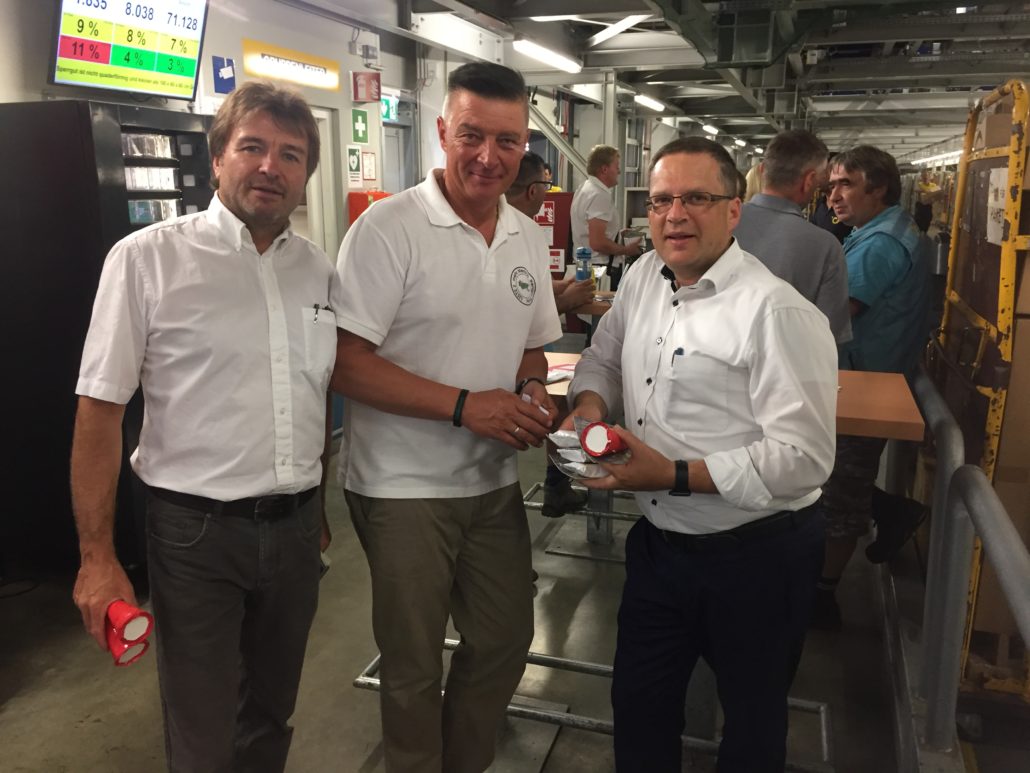 Kein geringerer wie der Klubobmann der Kanzlerpartei Gust Wöginger kam mit einer Eisladung ins Verteilzentrum der Post nach Allhaming und war sich nicht zu schade, stundenlang Eis an die geplagten Kolleginnen und Kollegen zu verteilen. Bei fast 40 Grad Celsius wurde das Eis auch sehr gerne entgegen genommen. An der Aktion beteiligt hat sich auch die Landesrätin aus Oberösterreich für Bildung und Gesundheit Mag. Christine Haberlander, die sich über die Arbeitsbedingungen, schon ob der Hitze in der Halle, verwundert zeigte.