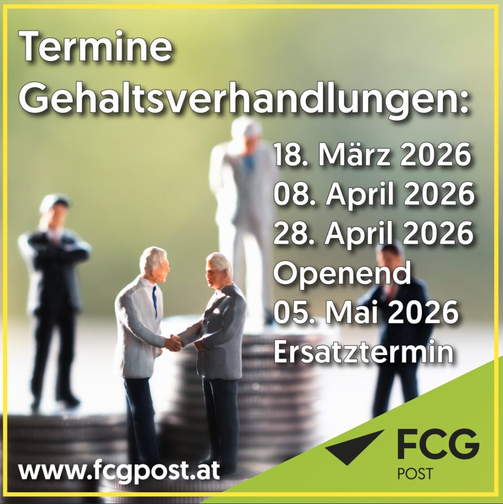 Die KV und Gehaltsverhandlungen in der Post AG starten am 18. März 2026 und so rechtzeitig abgeschlossen werden, dass die verhandelten Erhöhungen mit 1. Juli wirksam werden.