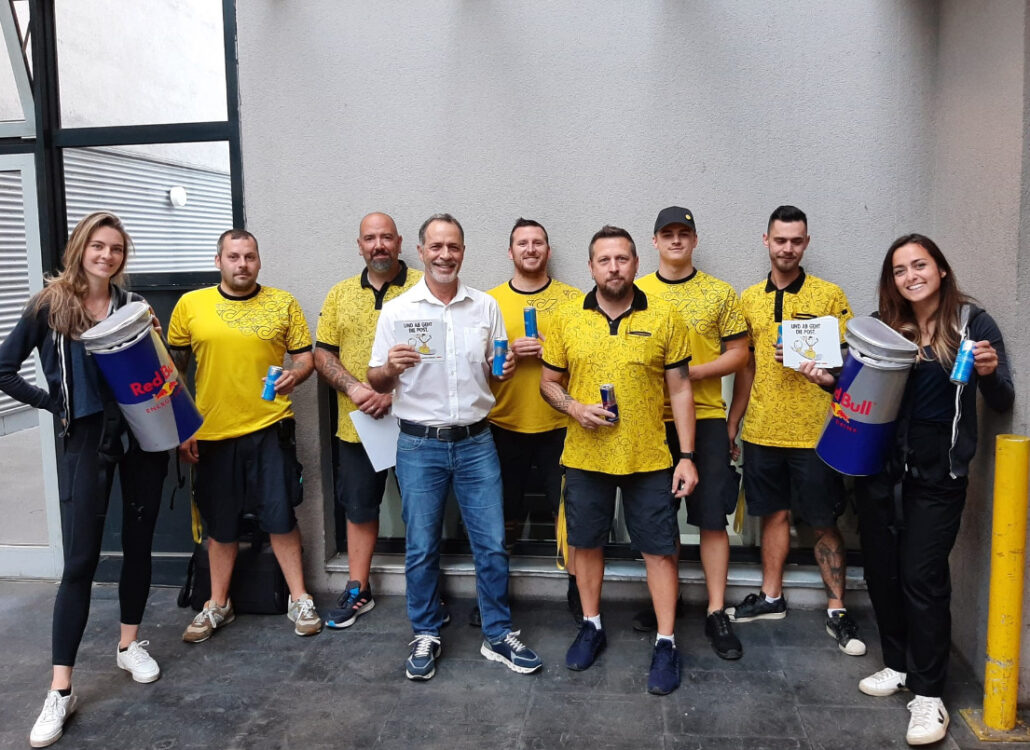 Aus dieser Reihe wurde eine ungewöhliche Aktion gemeinsam mit Redbull organisiert, bei der Mitarbeiter:innen von RedBull, den Postmitarbeitern „Energiedrinks“ gebracht und übergeben haben.